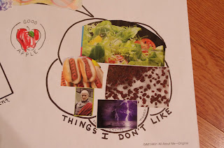 I love looking back at Katie's All About Me posters from the past few years. This year, she took a bigger role in putting it together! At the meeting before school started, her teacher gave us this sheet to fill out....My Very Own Poster All About Me! It required magazine cutouts and drawing and really thinking!